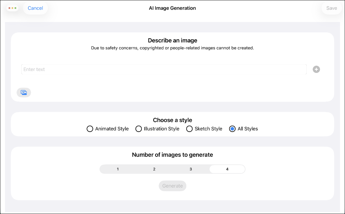 Enable AI Image Generation in the app settings, and then select the checkmark