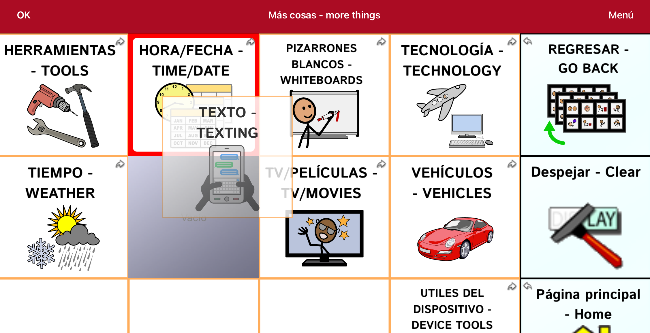Nota: Para Volver a mostrar un botón o grupo de botones, toque Menú, Modo de esconder, toque un botón o grupo de botones escondidos, y toque OK.