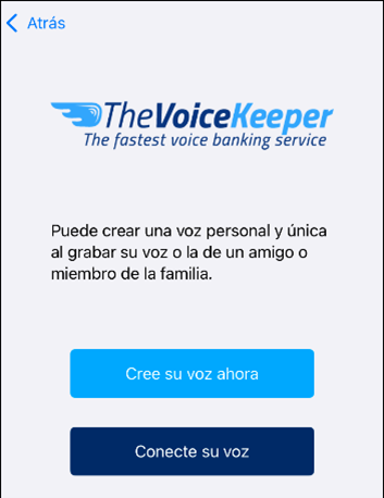 Pruebe su voz en la aplicación The Voice Keeper o en el sitio web. Si está conforme con la voz, siga las instrucciones a continuación para conectar la voz a su dispositivo.