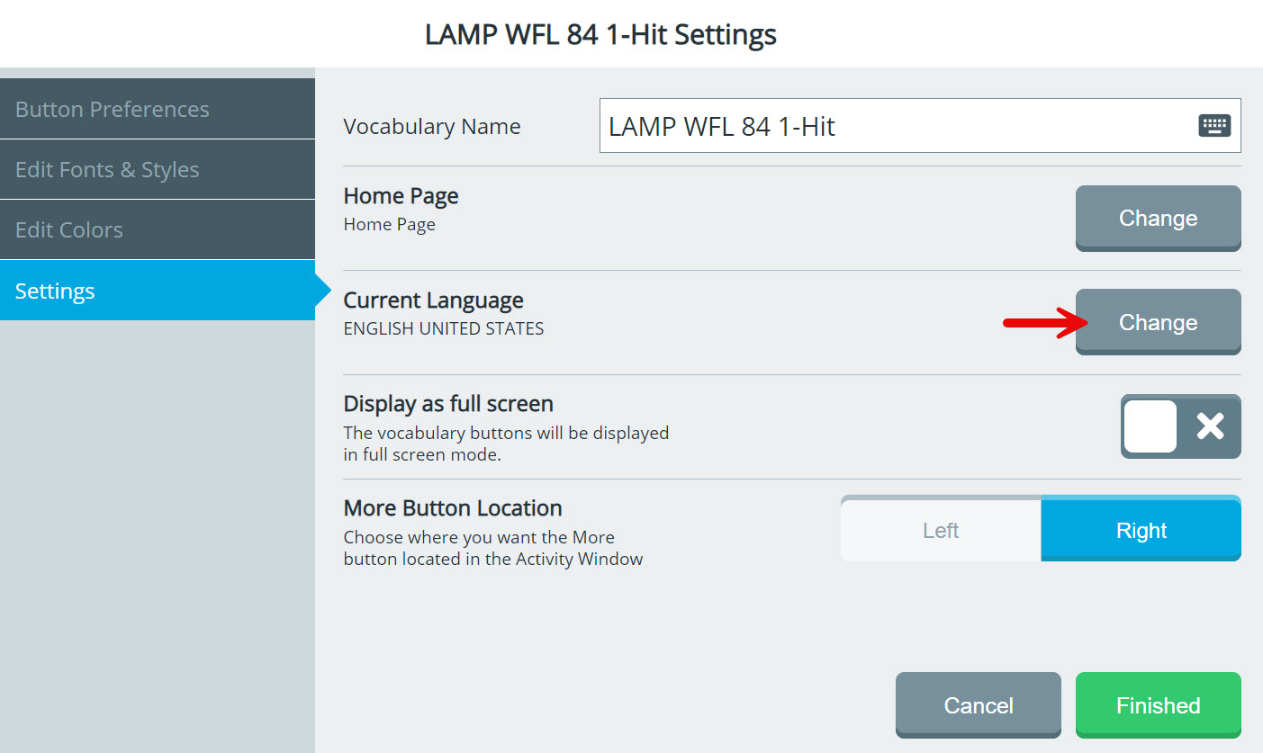 Go to Menu > Toolbox > Vocabulary > Vocabulary Settings.
