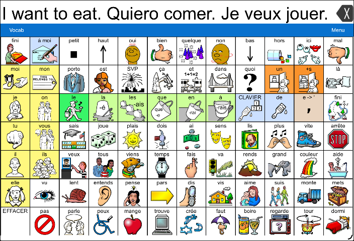 To help with literacy, the Highlight Spoken Word setting allows users to see the words highlighted in the SDB as they are spoken. When you select a color, words will be highlighted in that color one at a time in the SDB as they are spoken.